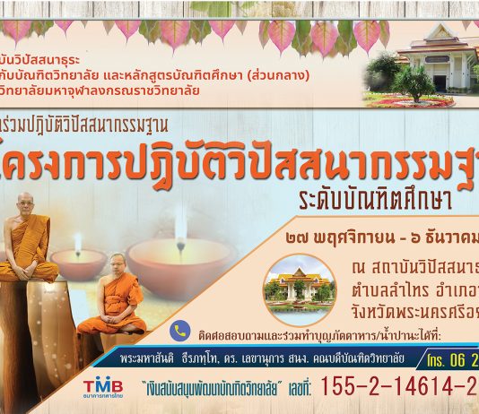 บัณฑิตวิทยาลัย จัดโครงการกิจกรรมพระพุทธศาสนาเพื่อสังคม