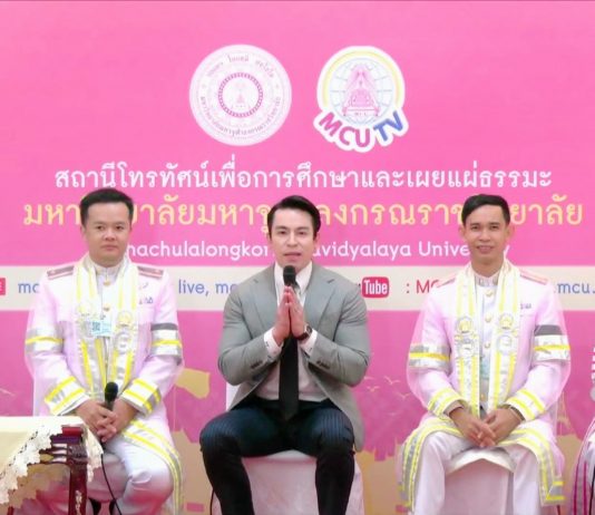 รศ.ดร.ประพันธ์ ศุภษร รองคณบดีฝ่ายวิชาการ บัณฑิตวิทยาลัย และ รศ.ดร.ตวงเพชร สมศรี ผอ.หลักสูตรพุทธศาสตรมหาบัณฑิต ภาคปกติ ให้สัมภาษณ์ MCUTV ในการถ่ายทอดสดในพิธีประสาทปริญญา ประจำปี ๒๕๖๘
