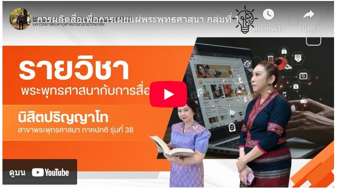 วิดีทัศน์ วีดิทัศน์ การผลิตสื่อเพื่อการเผยแผ่พระพุทธศาสนา รายวิชา พระพุทธศาสนากับการสื่อสาร นิสิตหลักสูตรพุทธศาสตรมหาบัณฑิต ภาคปกติ รุ่นที่ ๓๘ กลุ่มที่ ๑ By gradmcu - September 6, 2025 0 214 Share on Facebook Tweet on Twitter รายวิชาพระพุทธศาสนากับการสื่อสาร นิสิตปริญญาโท สาขาวิชาพระพุทธศาสนา ภาคปกติ รุ่นที่ 38 กลุ่มที่ 1