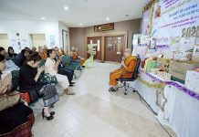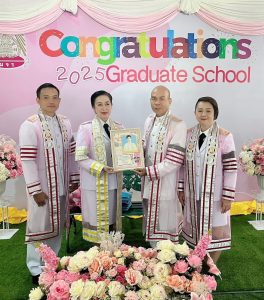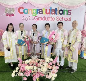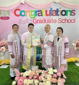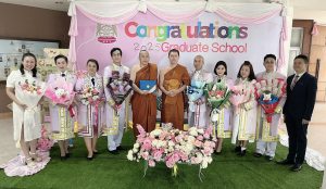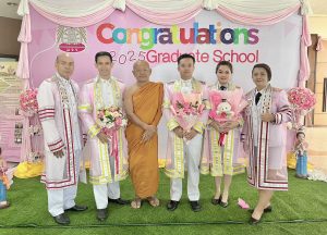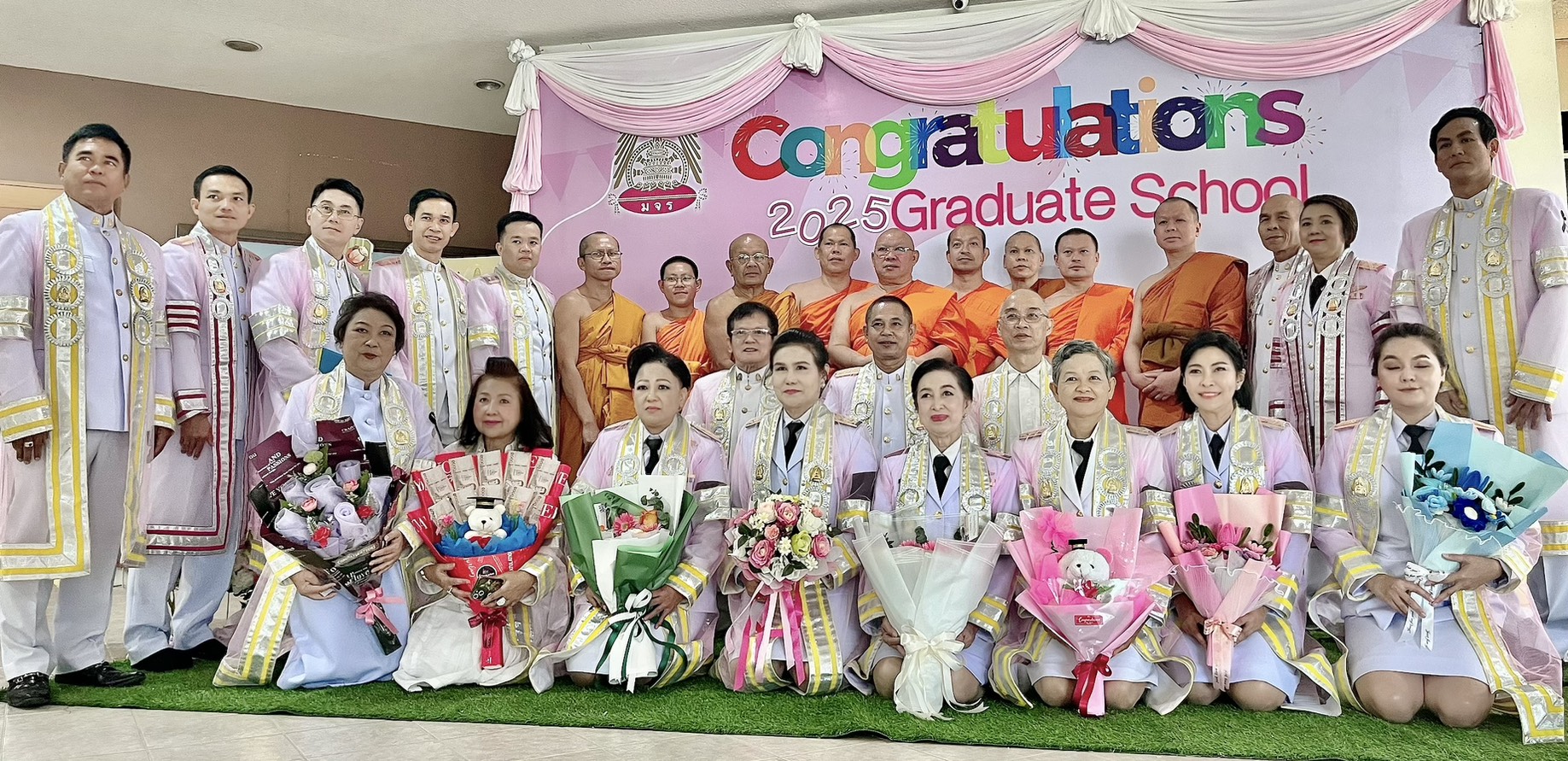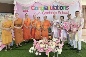 ณ ซุ้มแสดงความยินดีบริเวณหน้าสำนักงานบัณฑิตวิทยาลัย มจร วังน้อย