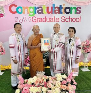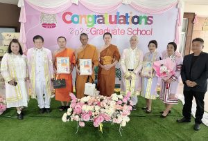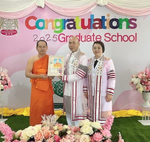 รศ.ดร.ประพันธ์ ศุภษร รองคณบดีบัณฑิตวิทยาลัย/ผอ.หลักสูตรพุทธศาสตรดุษฎีบัณฑิต สาขาวิชาพระพุทธศาสนา ภาคเสาร์ อาทิตย์ ถวาย/มอบของที่ระลึกแสดงมุทิตา/แสดงความยินดี/แด่ดุษฎีบัณฑิต ภาคเสาร์ อาทิตย์